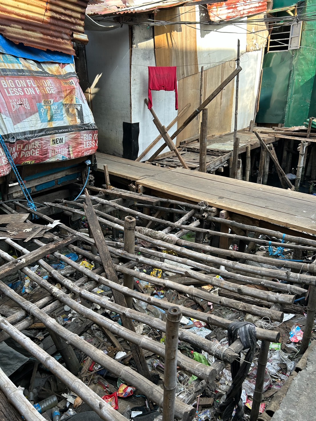 学んだことです。この地域では水の上に家が建ち並んでおり足場が悪く崩れている部分も多々ありました。家賃は1か月おおよそ1500円ほどですが、それでもこの地域の人々にとっては家賃を稼ぐことさえも大変なことであることに胸が痛くなりました。